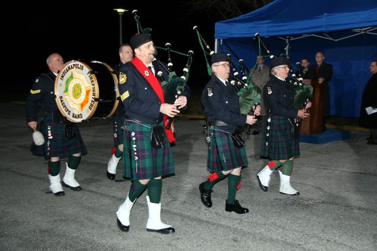 Band piping at a fund raiser for a firefighter being treated for cancer. I am in there somewhere. We weren’t kilted for this event. March 5, 2010.