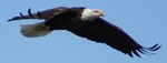 Bald eagle soaring above the Mississippi River near Davenport Iowa. I was privileged to take this picture February 26, 2010. Eagles over winter here as the river doesn’t freeze and they can feed on fish.